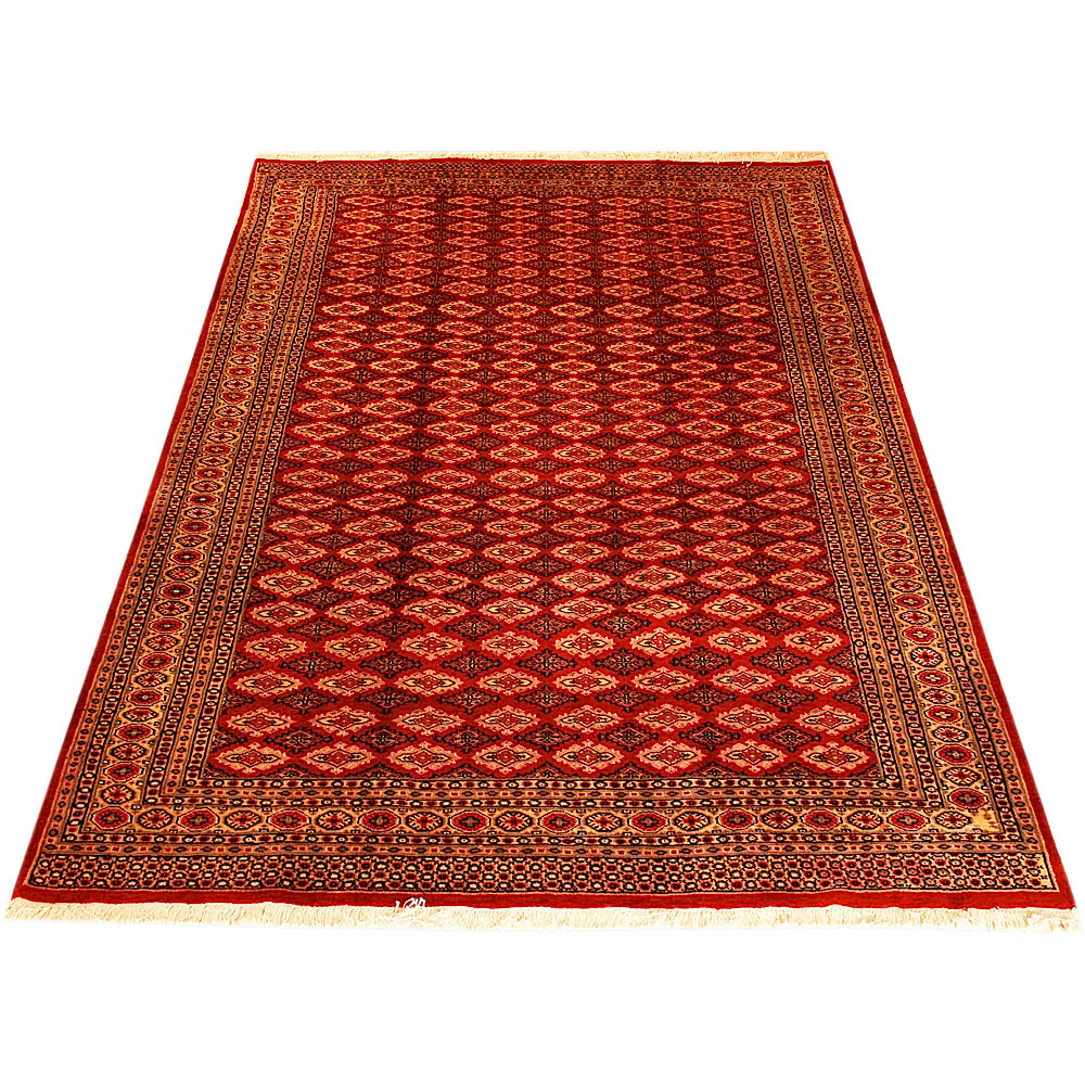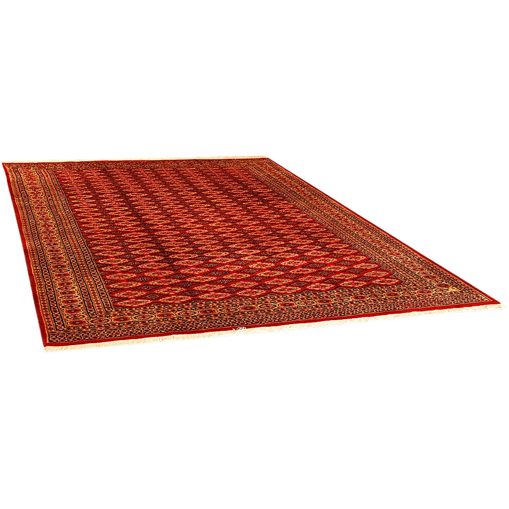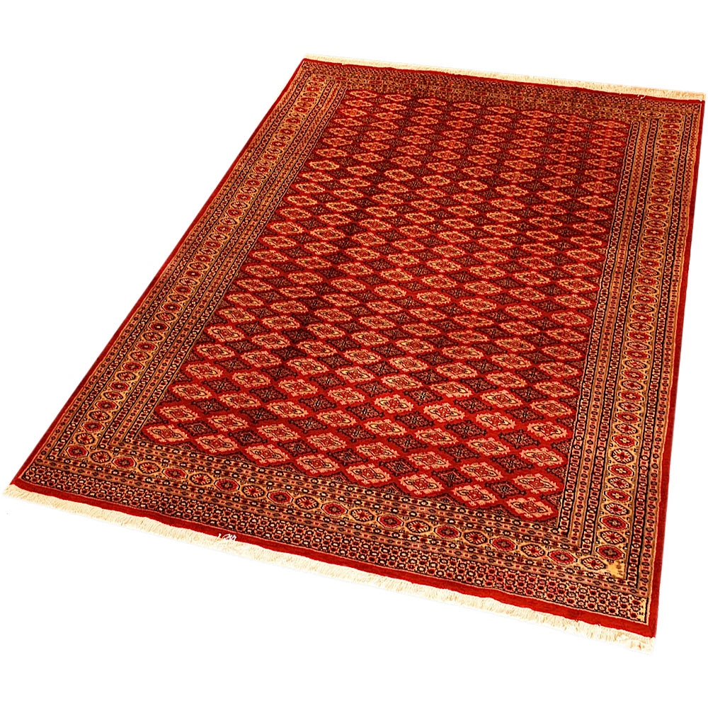 Such carpets arrive from Pakistan and are usually manufactured from wool and silk. They have traditional Sarouk and Yauo designs in a gul pattern that is repeated in series. They have a beautiful sheen and a smooth and soft feeling. Normally they are manufactured in a variety of colour combinations; a red - brown background colour along with a white, red, black and blue color motifs.