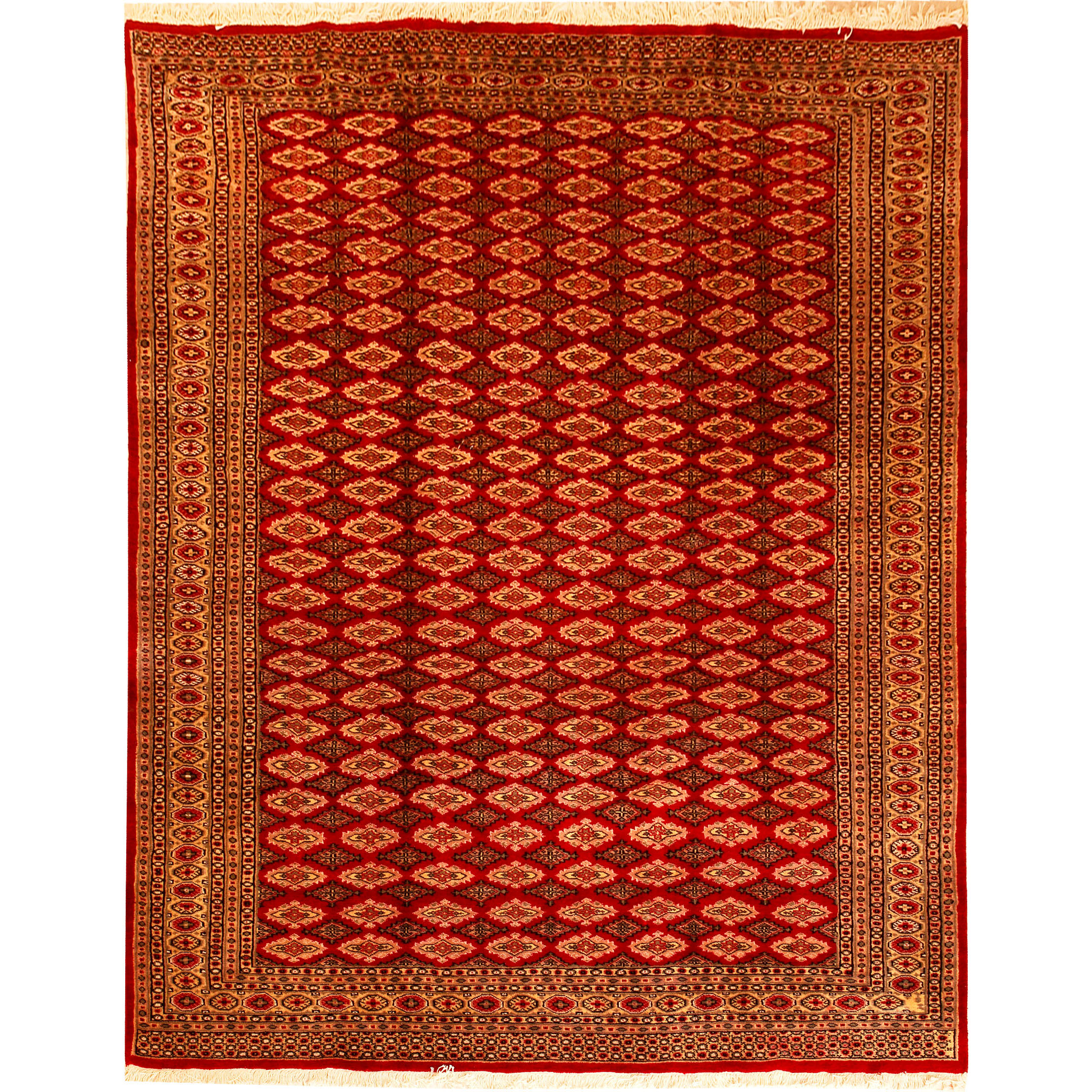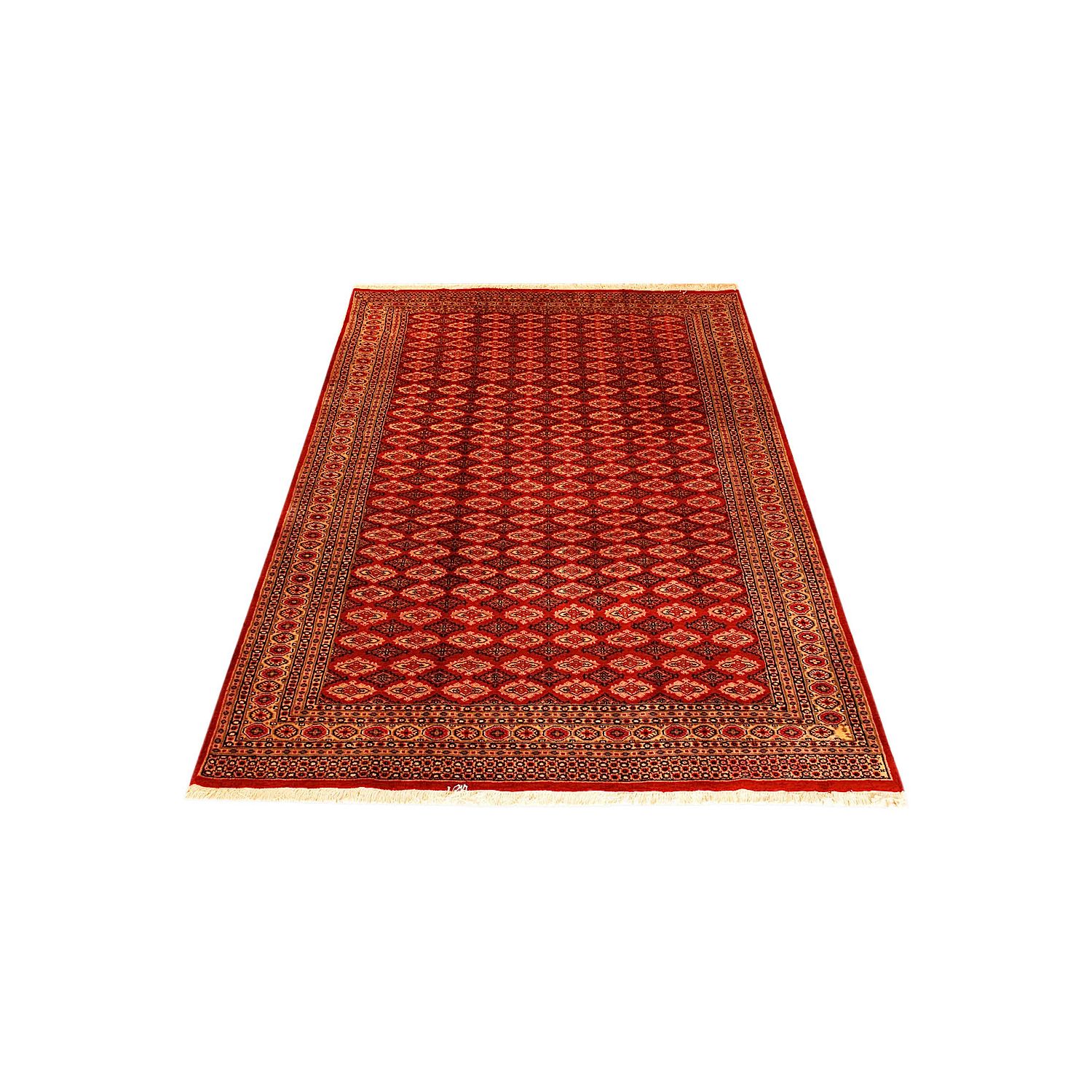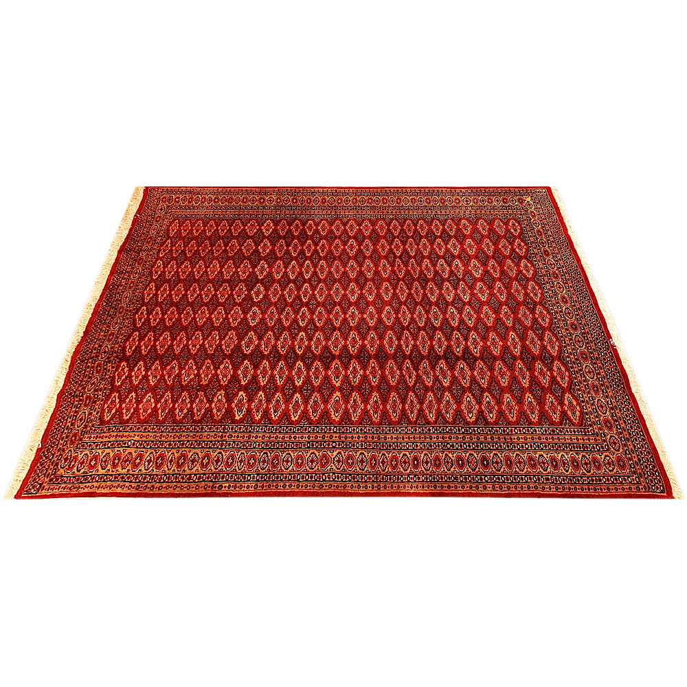 Such carpets arrive from Pakistan and are usually manufactured from wool and silk. They have traditional Sarouk and Yauo designs in a gul pattern that is repeated in series. They have a beautiful sheen and a smooth and soft feeling. Normally they are manufactured in a variety of colour combinations; a red - brown background colour along with a white, red, black and blue color motifs.