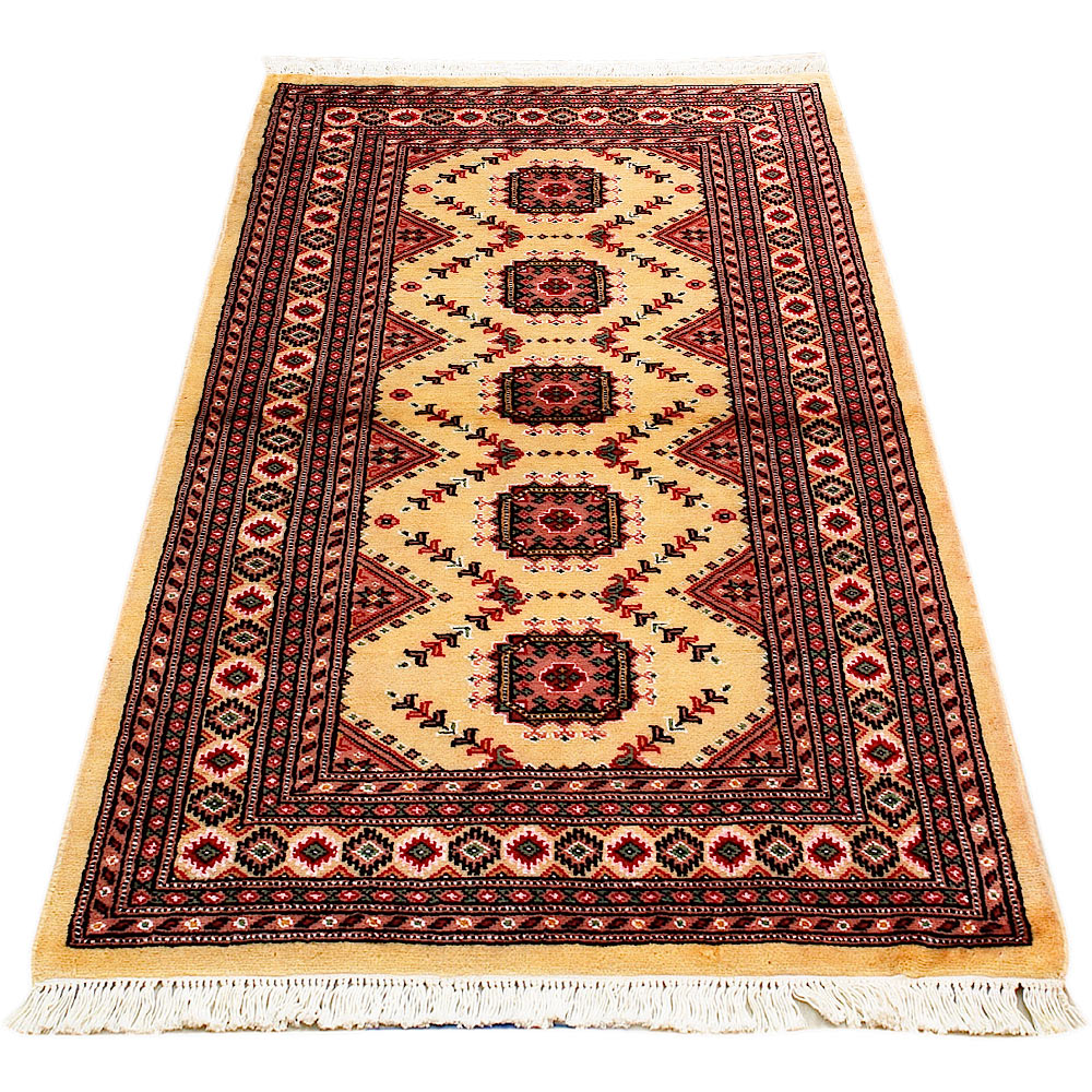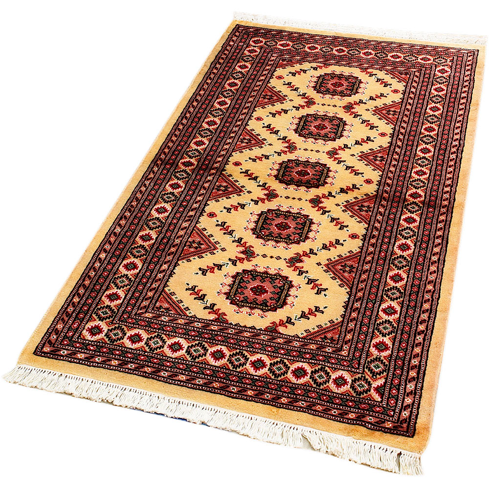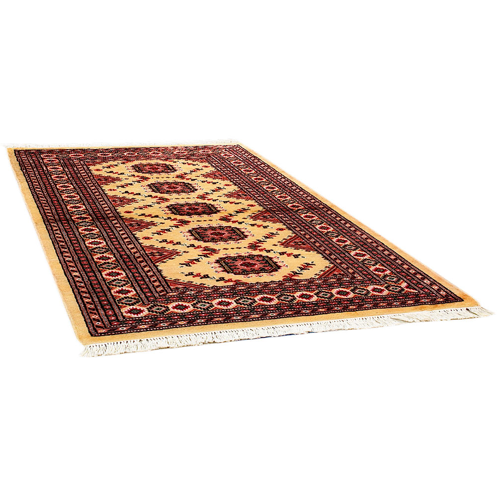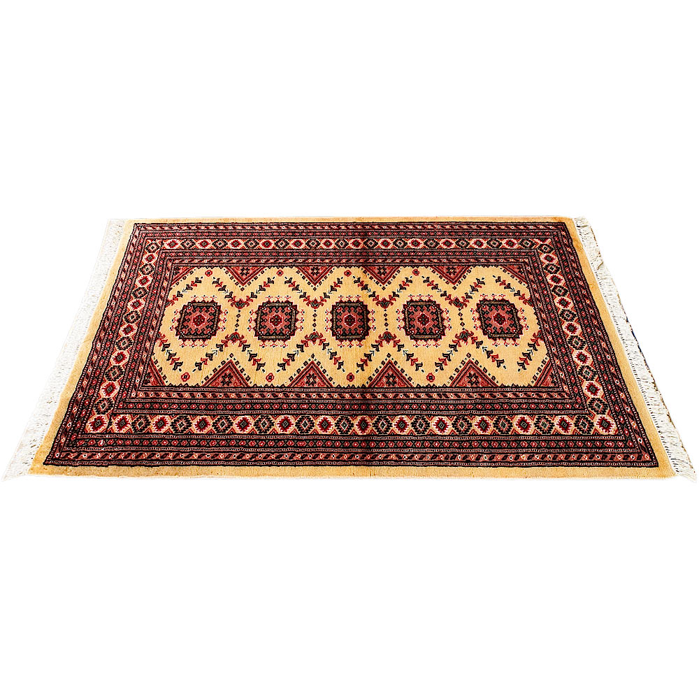 Such carpets arrive from Pakistan and are usually manufactured from wool and silk. They have traditional Sarouk and Yauo designs in a gul pattern that is repeated in series. They have a beautiful sheen and a smooth and soft feeling. Normally they are manufactured in a variety of colour combinations; a red - brown background colour along with a white, red, black and blue color motifs.