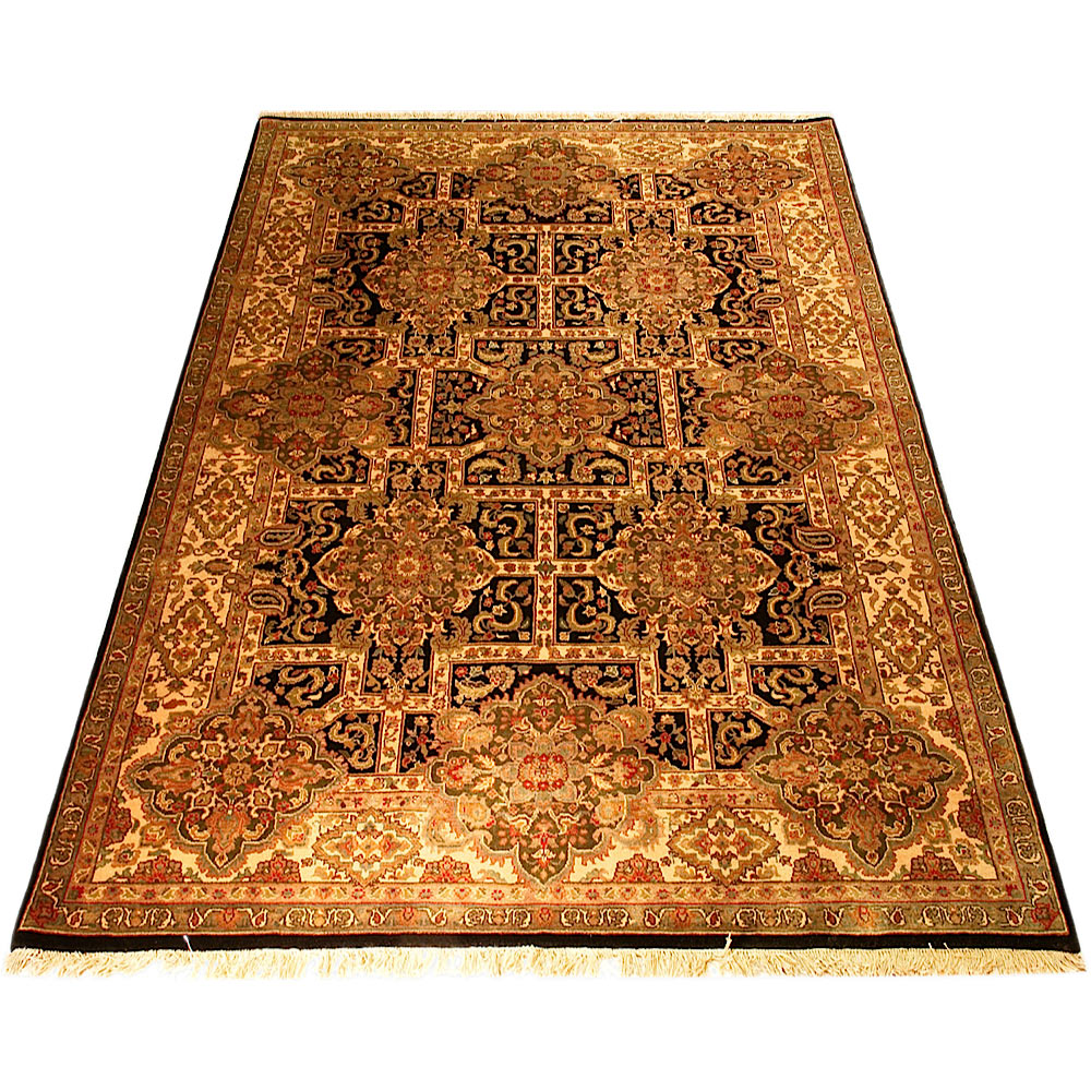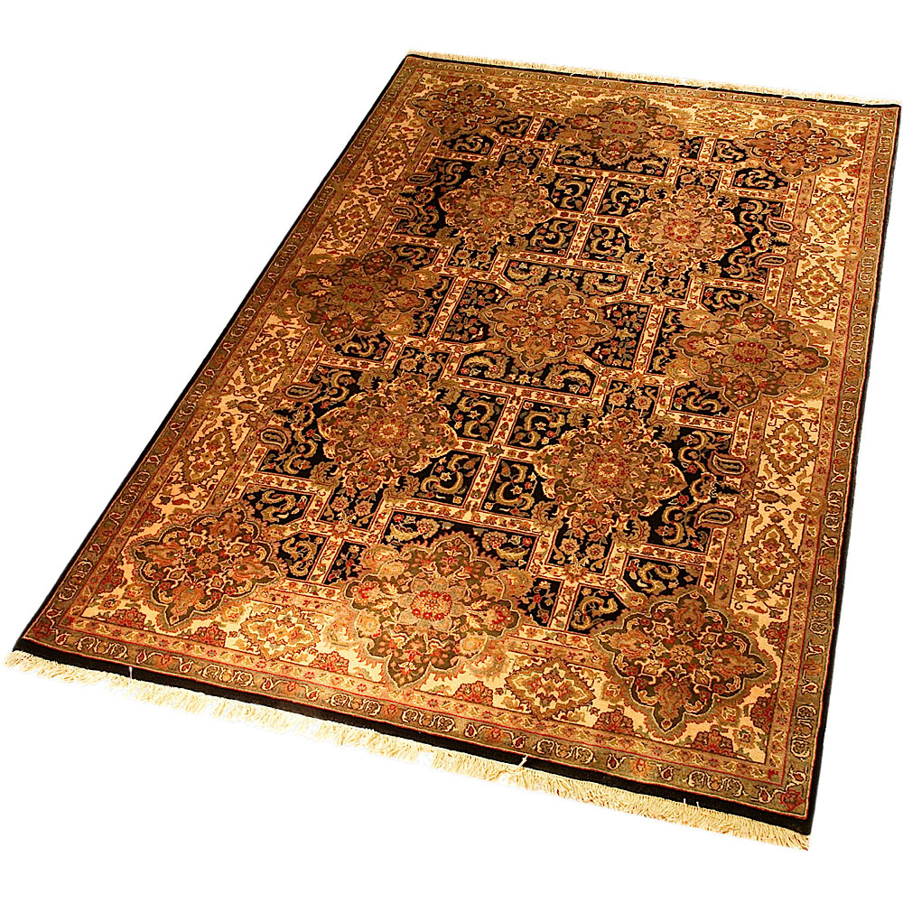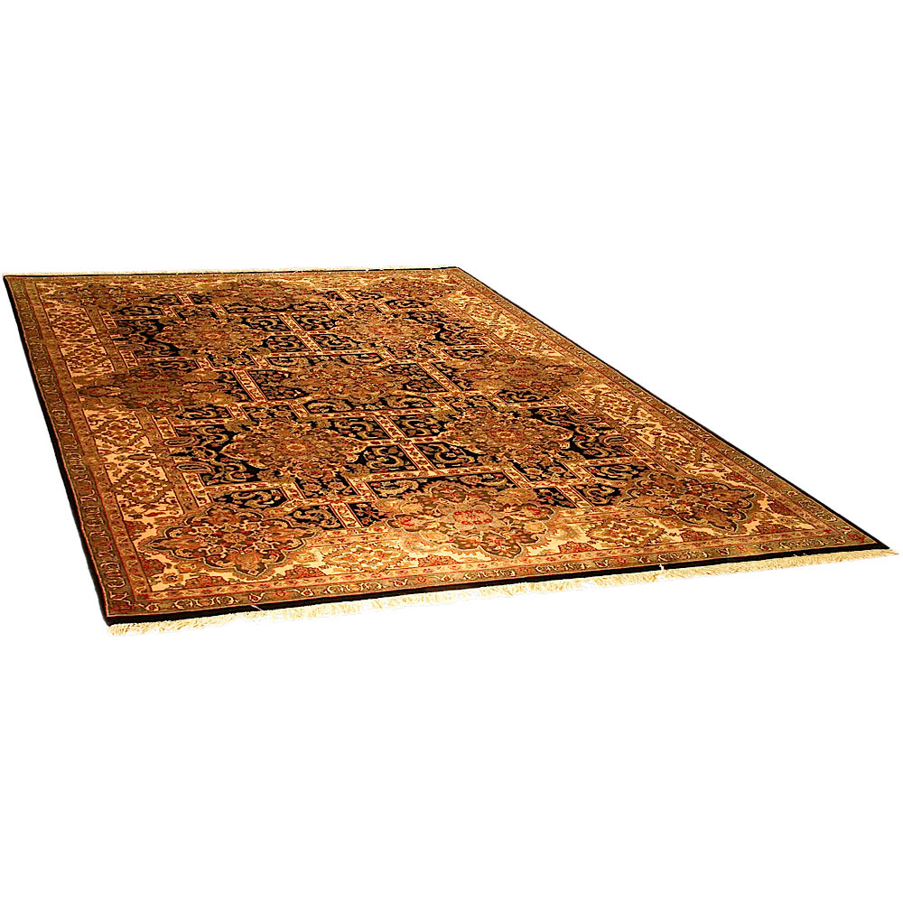 During the 16th and 17th century in North Central India, the Moghul dynasty reached their golden age. There are references in their history about weavers of large rugs which have floral designs, have pal colors and use abrash, and their designs are inspired from Persian and Afghan culture. Their knot is asymmetrical.