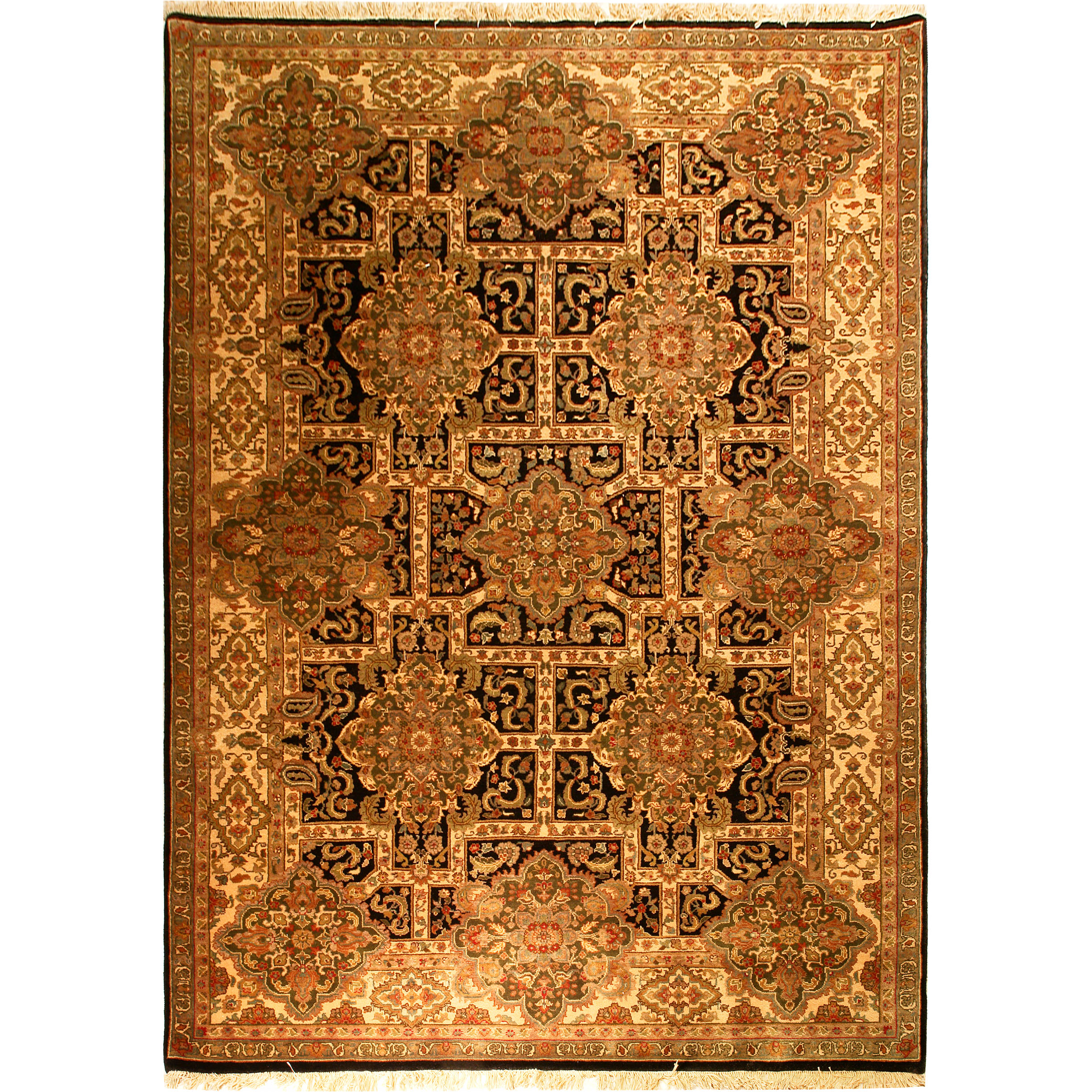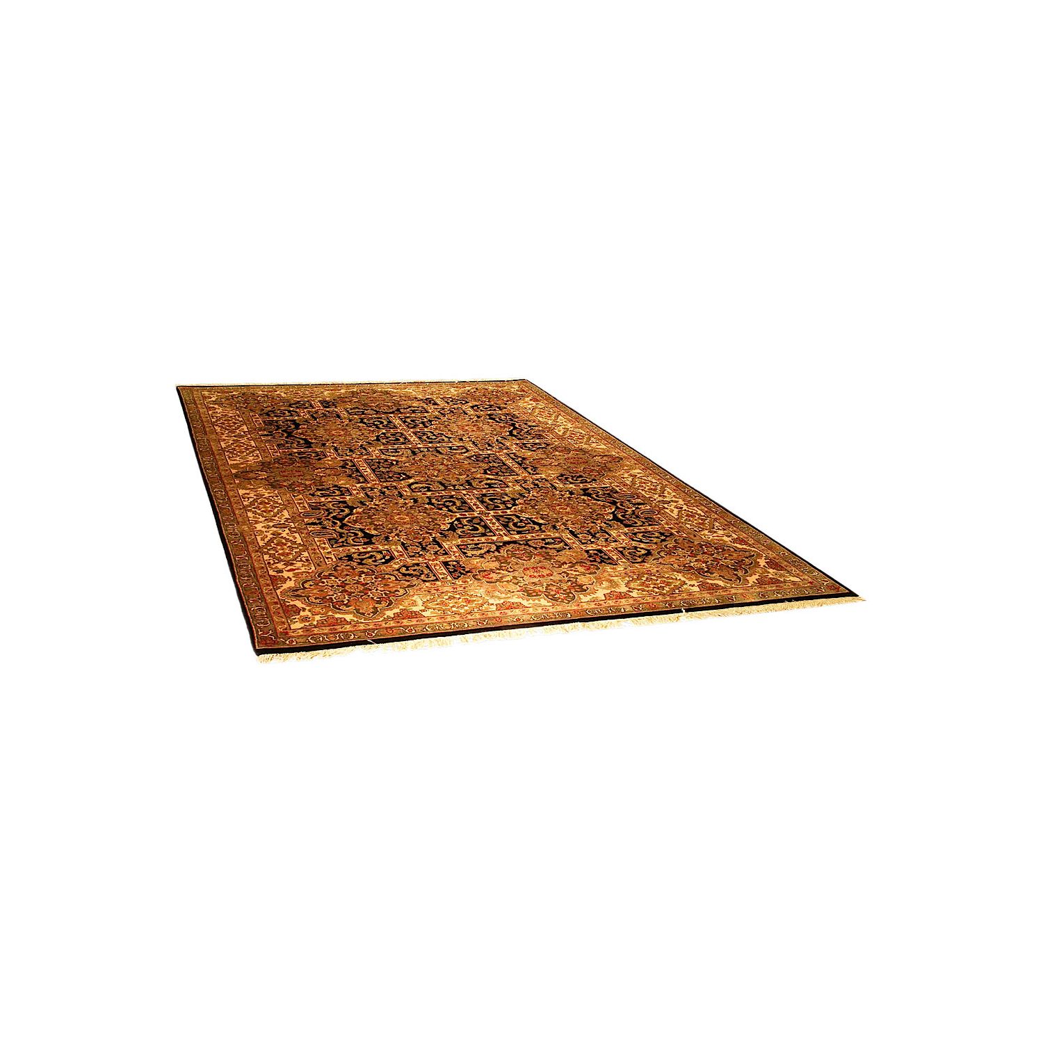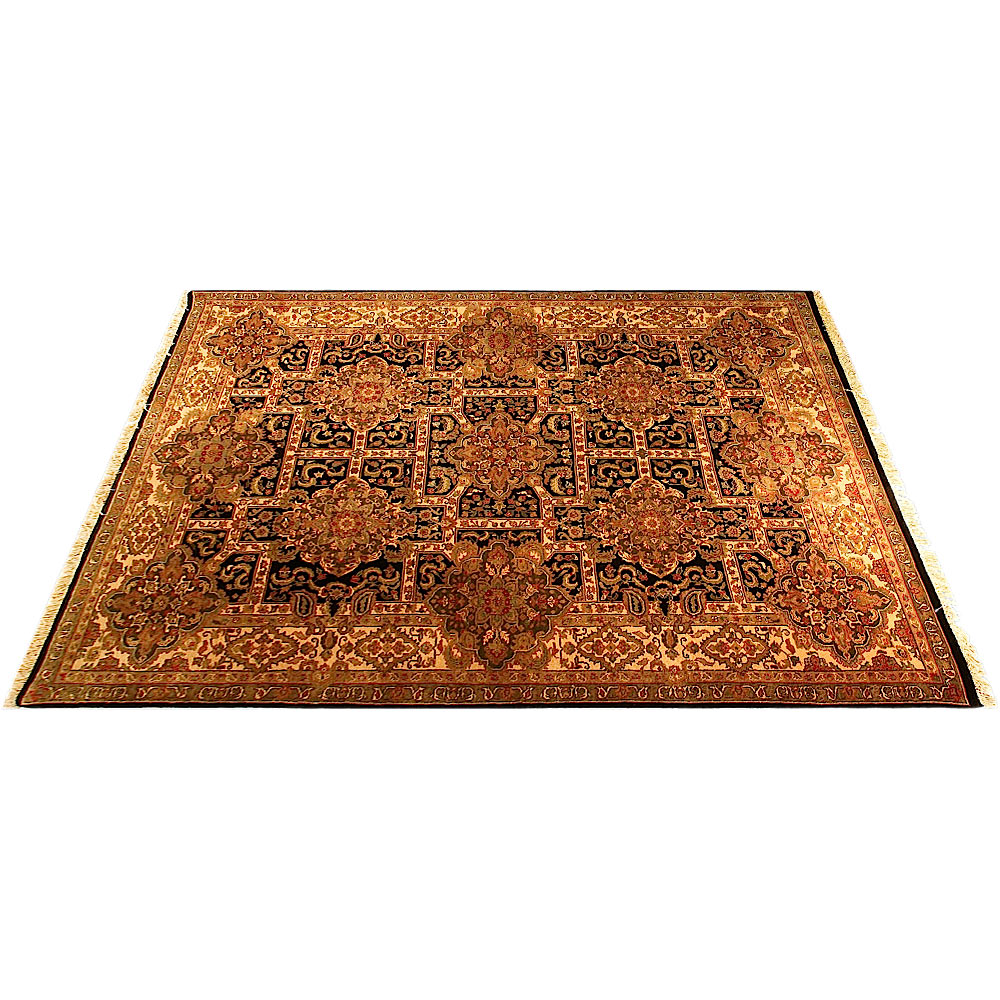 During the 16th and 17th century in North Central India, the Moghul dynasty reached their golden age. There are references in their history about weavers of large rugs which have floral designs, have pal colors and use abrash, and their designs are inspired from Persian and Afghan culture. Their knot is asymmetrical.