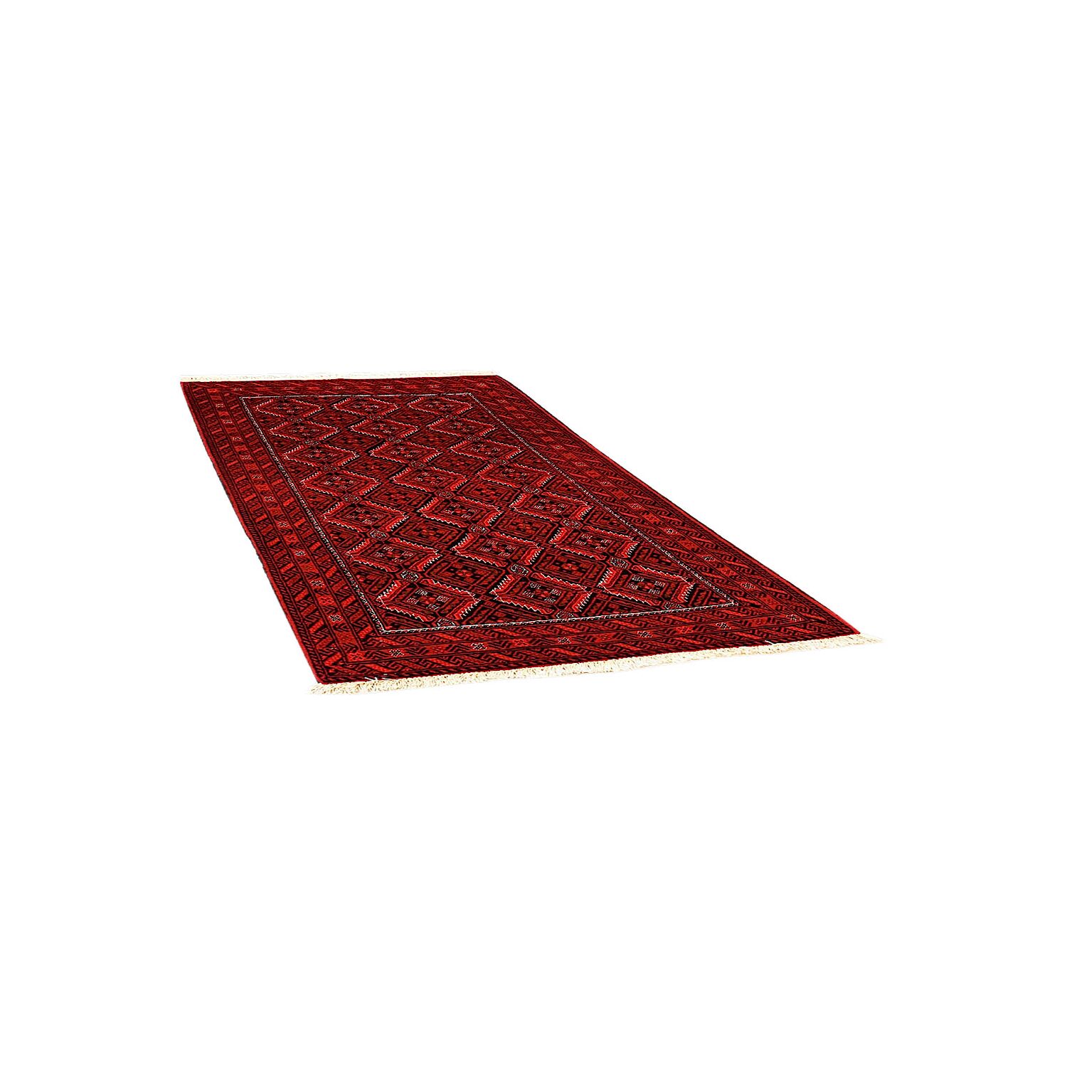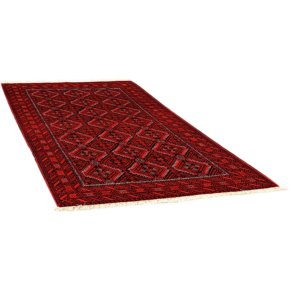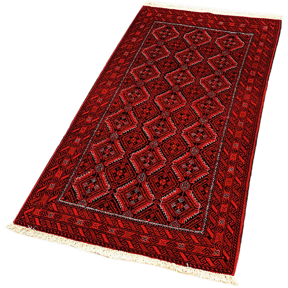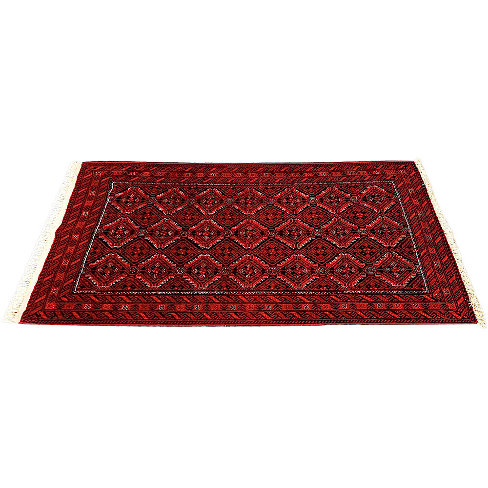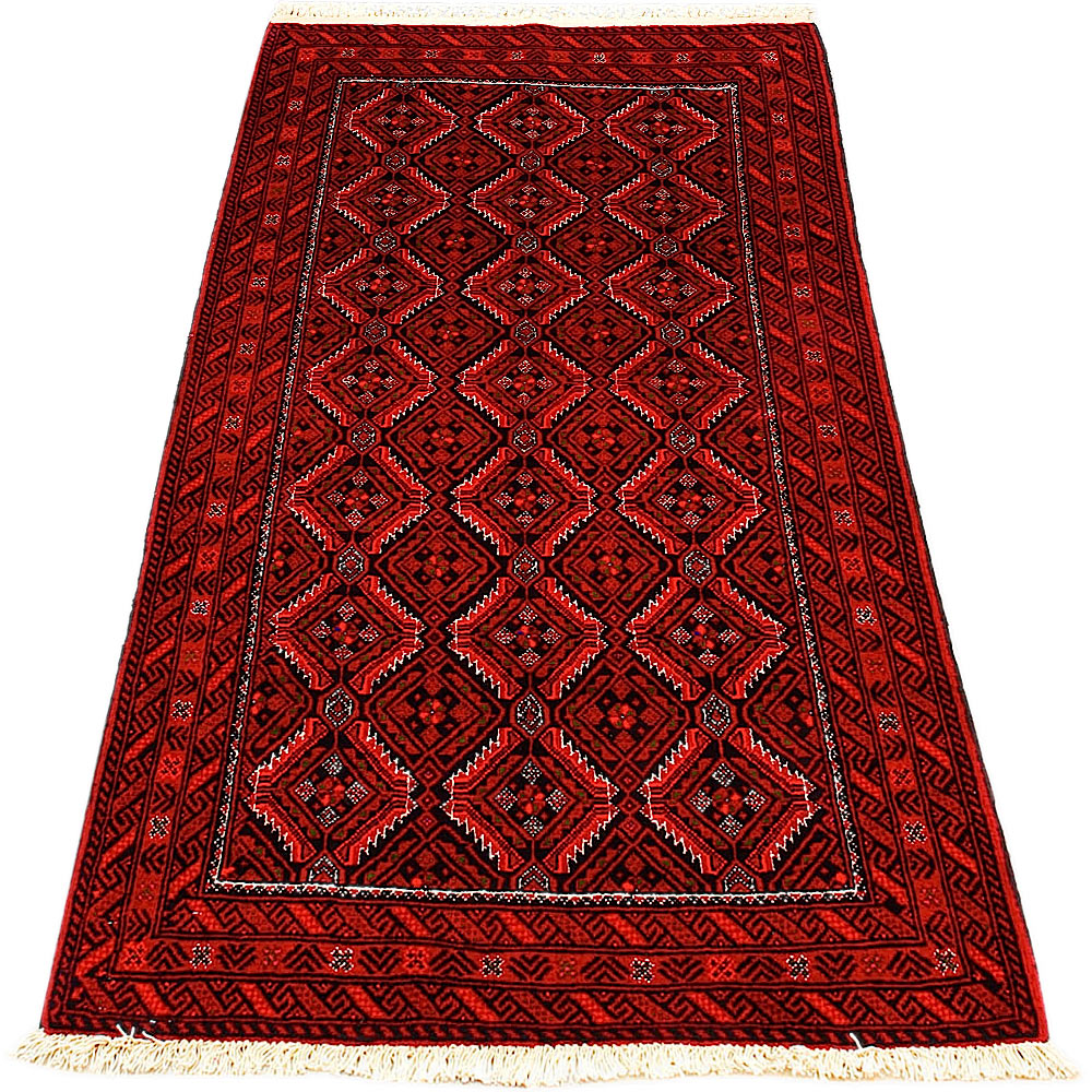 Baluch (or Baluchistan) is a region that includes the Baluchistan province in Pakistan as well as parts of Iran and Afghanistan. These very durable carpets are called Baluchi / Beluchi / Balochi since they are made in this border region; they are usually made of 100% wool and in small sizes, and feature dark red and brown colours and repetitive forms, usually the "gkiua" pattern.