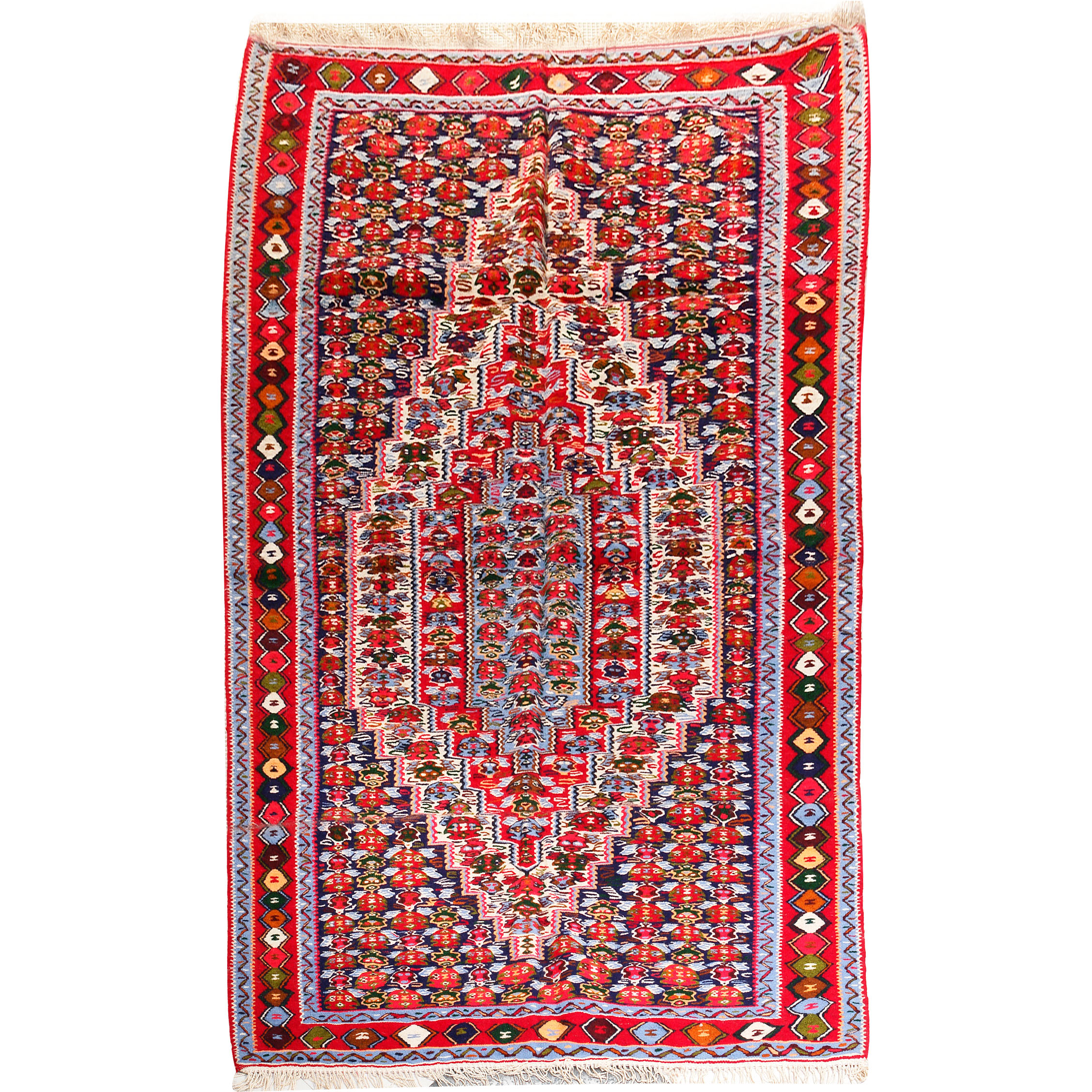 Kilims are cotton, wool and silk carpets that don't have a pile. Their designs are inspired from the natural colors of landscape, they are durable and very decorative. The most famous are those from the regions of Baluch, Turcoman, Uzbek, Taimani or the Kazak.