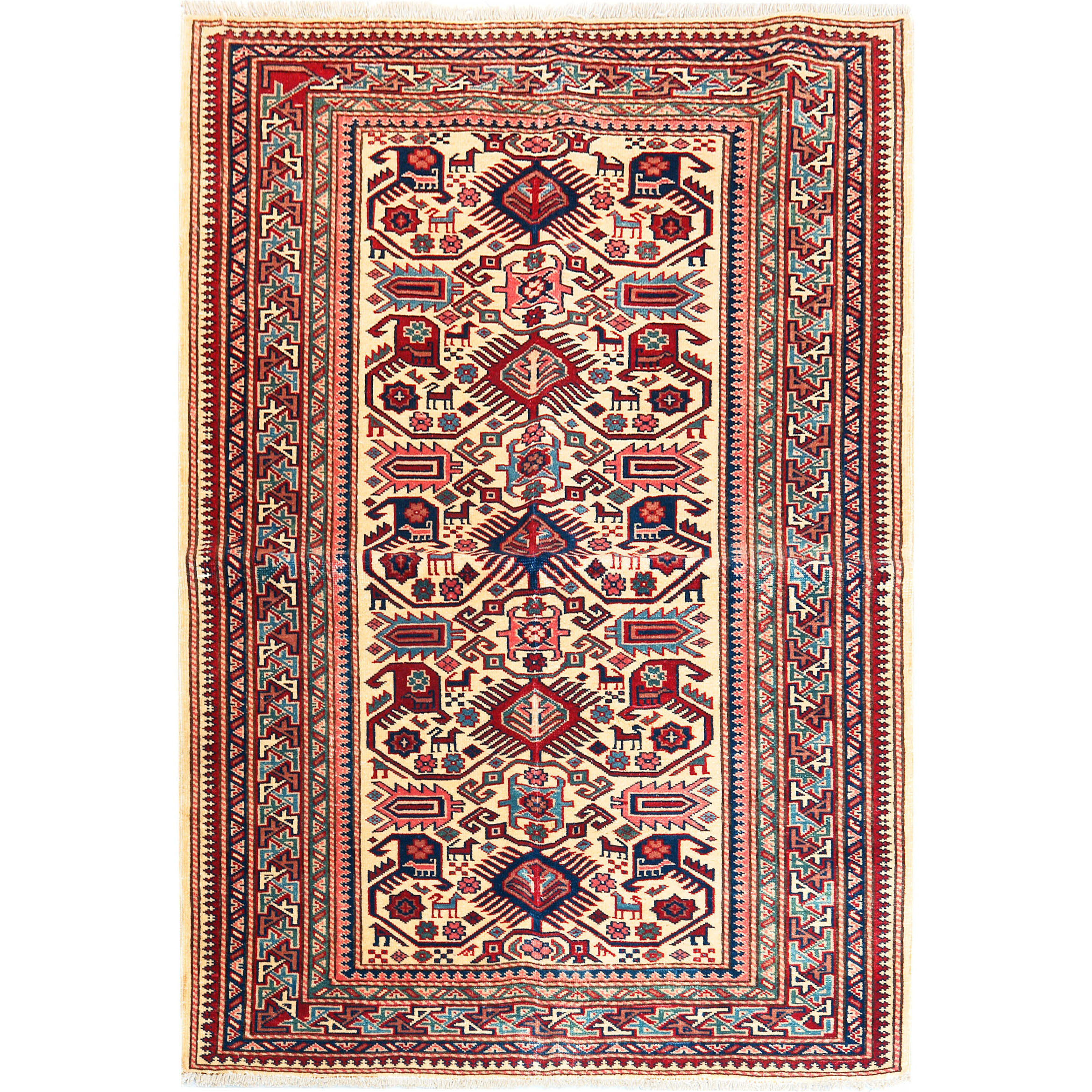 Shirvan carpets are made in the region of Shirvan in Azerbaijan near the shores of the Caspian sea. They are characterized by an intricate design, which depicts numerous artifacts of everyday life, birds and people.